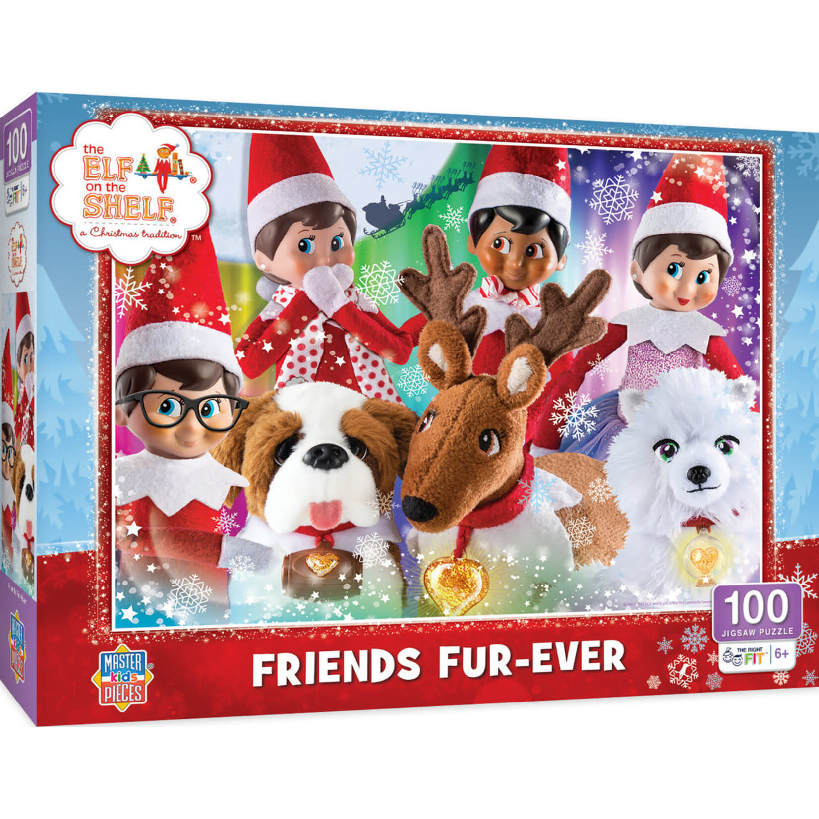 Elf on the Shelf is fun-filled Christmas tradition that has captured the hearts of children everywhere. The Friends Fur-Ever puzzle is 100 pieces and 19 inches x 14 inches in size. Look for The Right Fit® puzzles collection and make sure your little one gets the correct piece count and size for a good challenge for their age. This puzzle is the right fit for ages 6+.