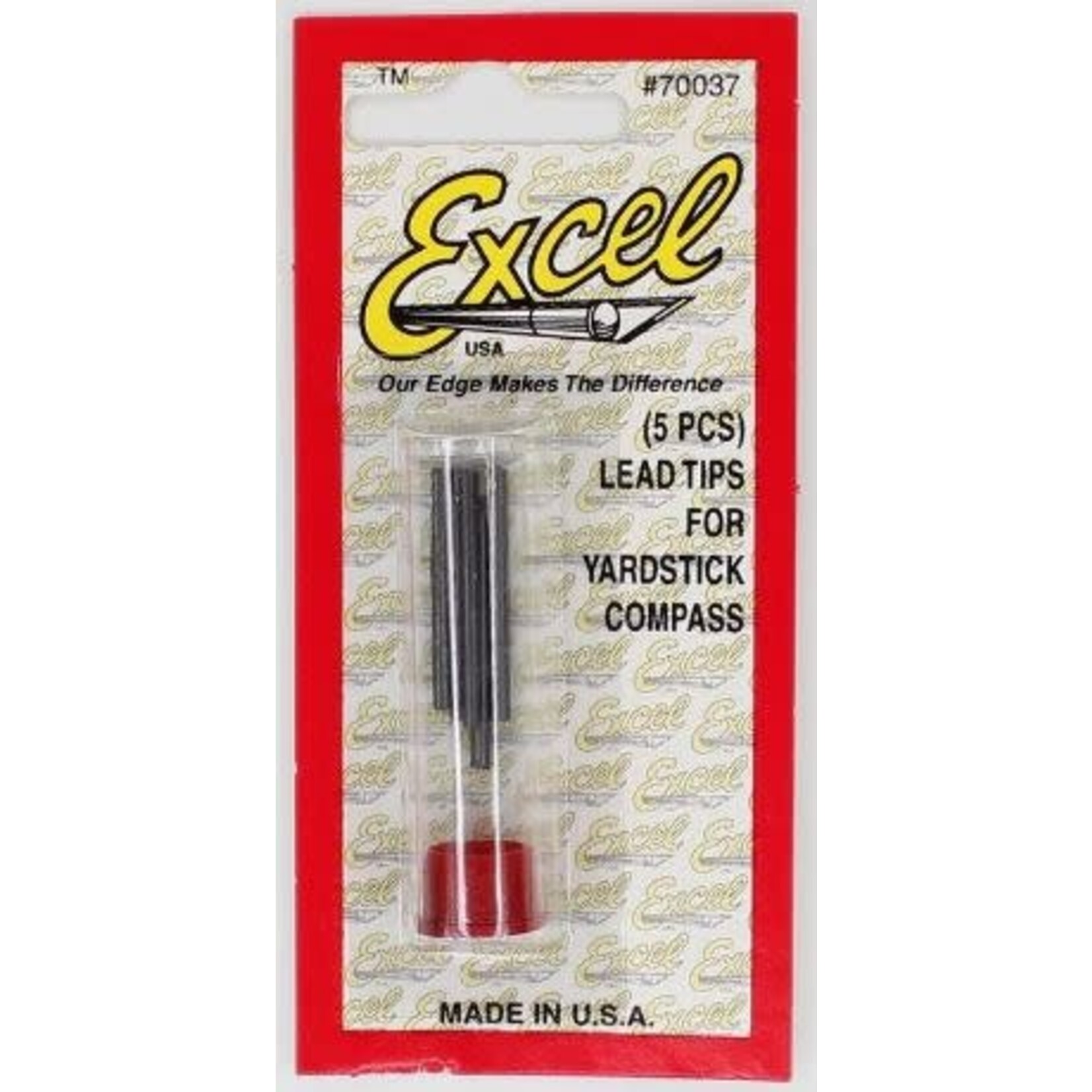 Five compass lead tips used in addition to any standard ruler or yardstick to create accurate points. Compass equipped with screw top to tighten or loosen onto yardstick.