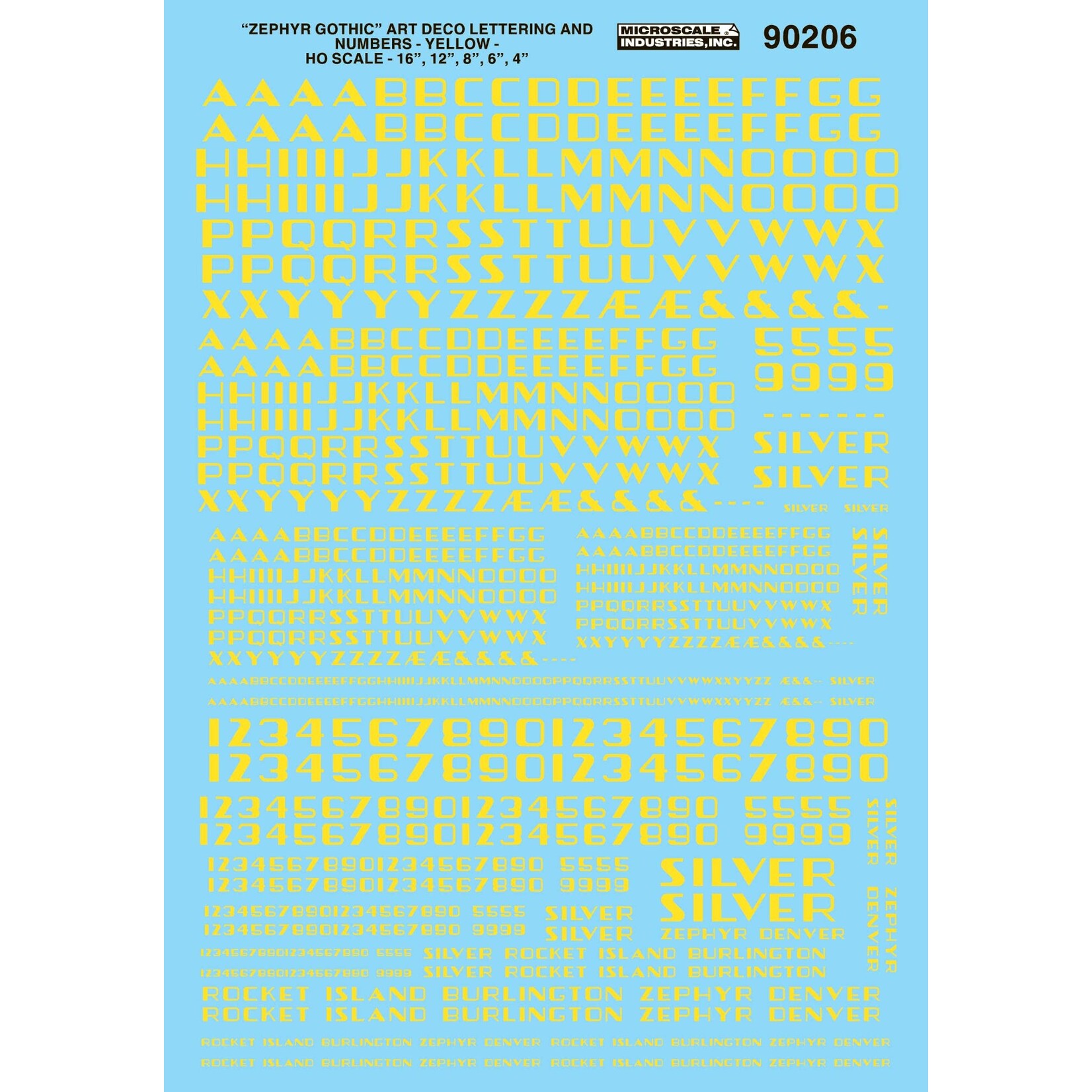 90206 HO Scale - Alphabets - Zephyr Gothic - Yellow Decals